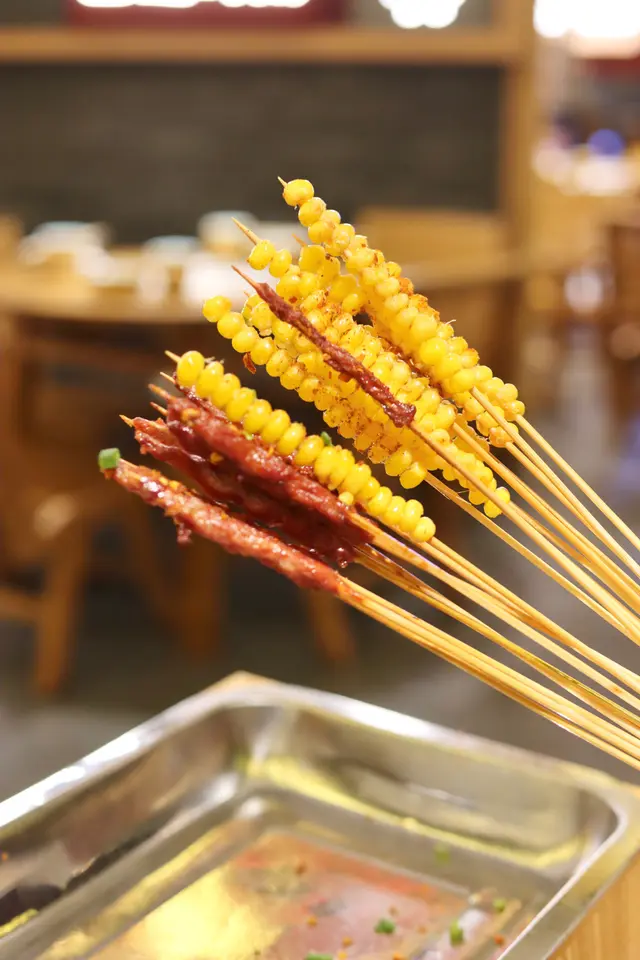 最後,我還點了一份玉米粒和牛肉串,玉米粒鮮甜可口,牛肉串則烤得香嫩,不過肉跟平時吃的不一樣。