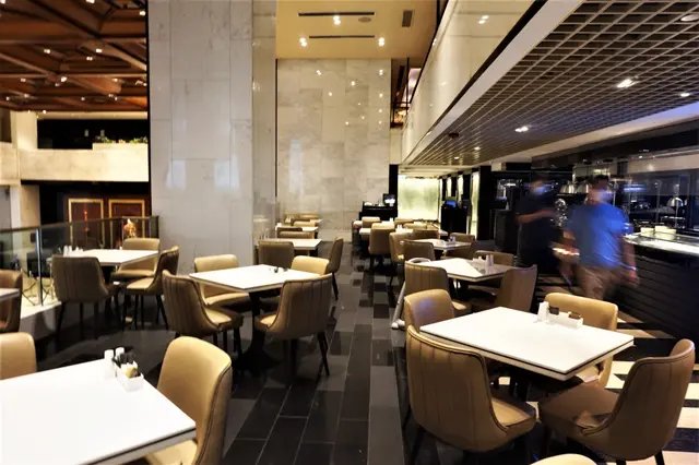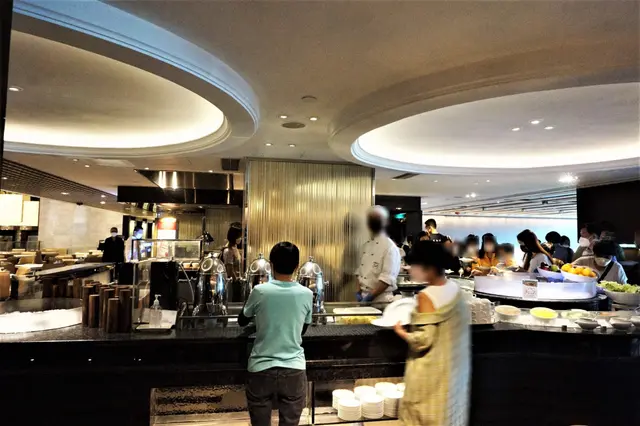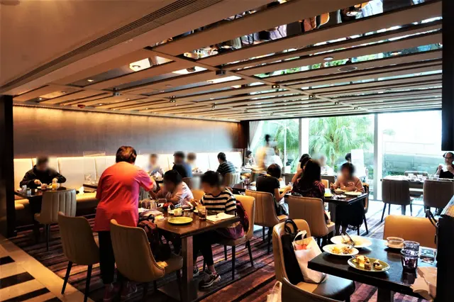 其實,餐廳嘅用餐區分好多個區域,我就覺得近酒店大堂嘅一邊就最好,因為夠晒開揚。如果有得揀,我都想坐出嚟,既人少啲,無咁聚埋一齊,空間感又強啲。