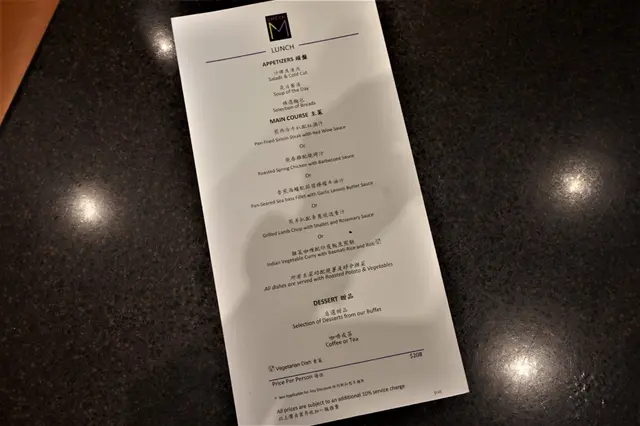 我哋就叫免費嚟食一餐,如果一般客人嚟食又點計呢?沙律、凍肉、餐湯、麵包、甜品及飲品全自助,主菜就5揀1,有肉、有魚、亦有素食,均一價$208 + 10%,酒店嚟講都算唔貴喇