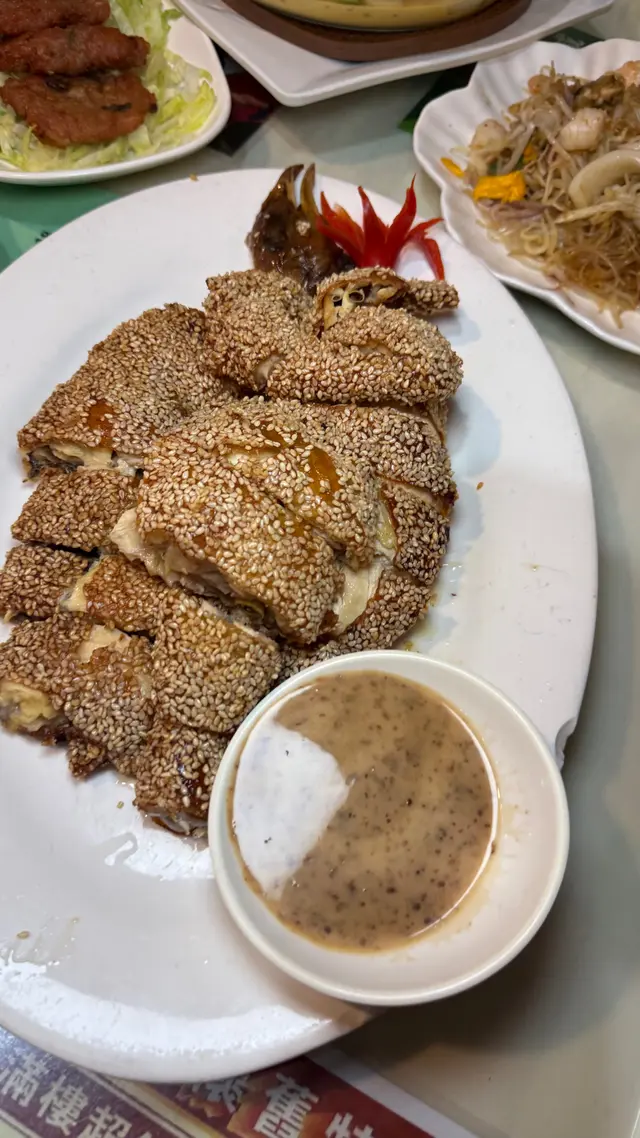 //鎮店芝麻雞 — 外皮香脆,芝麻粒帶來堅果香,雞肉嫩滑多汁。