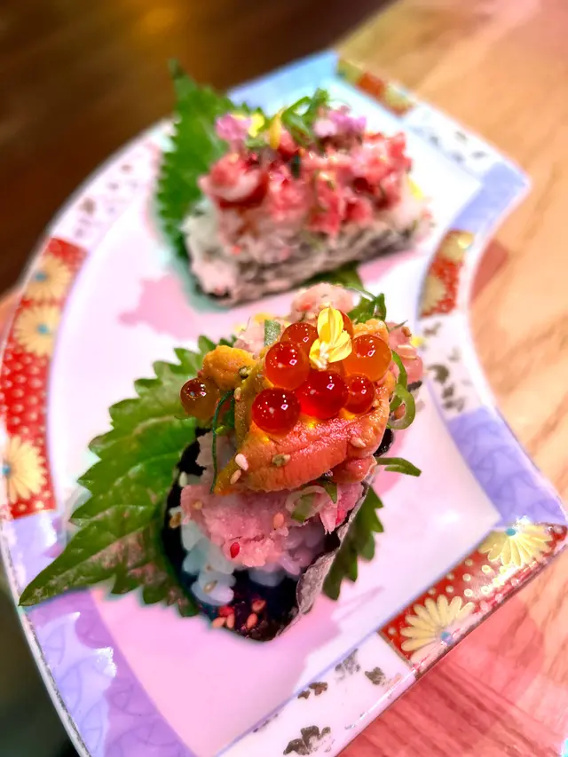 三文魚籽海膽杯色彩繽紛,使用新鮮的海膽與三文魚籽,口感鮮滑。海膽的鮮味與三文魚籽的鹹香相互交融,帶來層次分明的味覺享受。