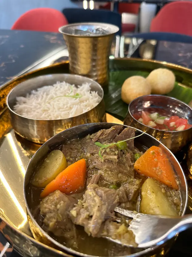 ❣️非常豐富的set,有羊肉主菜,有炸麵包球和印度米飯,有配菜,加杯冰凍lemonade 🍋
