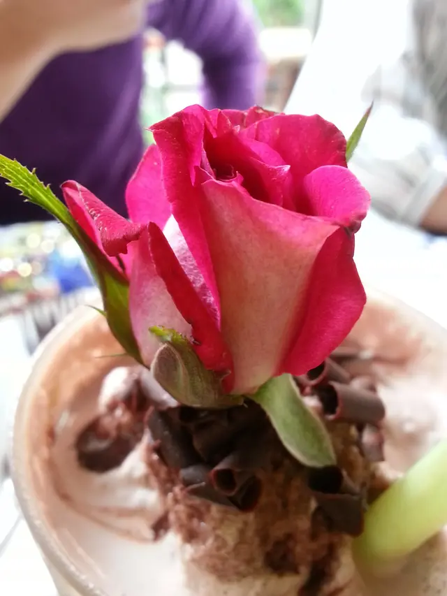 因能早放工的關係, 所以我和幾位同事一起到Full Cup Cafe食tea, 我本身少喝凍飲, 但經友人推介, 便叫了一柸玫瑰朱古力沙冰,  一朵小小的鮮玫瑰花放在沙冰之上不但賣相討好, 濃濃的朱古力味中透著淡淡的玫瑰花香味, 實在叫人一試難忘! 想必是女生至愛的夏日特飲!! 鴨胸冷麵及三文魚冷麵味道也不錯, 三文魚被砌成如一朵花般放在冷麵上, 賣相精緻, 冷麵亦夠爽口, 若能多一點麻醬的味道則更好, Full Cup Cafe位於鬧市中一所不起眼的大廈內, 但卻能提供賣相及味道皆吸引的食物及飲品, 確是一個不錯的選擇! =]