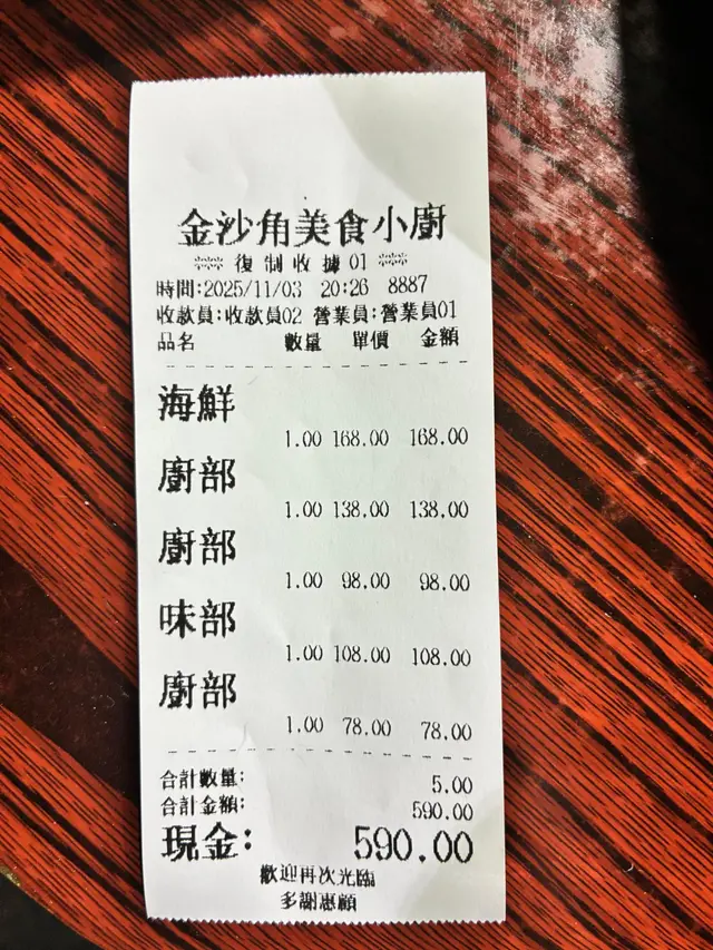 地道大牌檔風味丨人氣爆燈! isabelpsy等級32025-11-11100 瀏覽 關注 地道大牌檔風味,熟客滿堂,人氣爆燈! 🍳 涼瓜肉碎菜脯煎蛋角:夠鑊氣,邊位香脆,蛋香同菜脯香氣完美融合,苦瓜唔會太搶戲,反而增添層次,好啱送飯。 🐔 蔥油雞:黃皮滑雞,雞味濃郁,皮下脂肪剛剛好,蔥油香噴噴,配埋鹽香醬油底,非常惹味。 🦑 椒鹽鮮魷:魷魚炸得乾身,外脆內嫩,唔油膩,蒜蓉同椒鹽落得適中,唔會過咸。 🐟 豉汁蒸鱔:鱔件夠厚肉,冇泥味,豉汁鹹香開胃,略帶微辣,配白飯一流。 整體水準穩定,價錢合理,啱晒打冷小酌。正宗地道風味,推薦比鍾意大排檔風味嘅朋友~以上食評乃用戶個人意見 , 並不代表OpenRice之觀點。讚好分享地道大牌檔風味丨人氣爆燈! 金沙角美食小厨 https://s.openrice.com/QrbT022XV00檢舉 張貼 評分5味道5環境5服務5衛生5抵食用餐日期2025-11-03等候時間20 分鐘 (堂食)