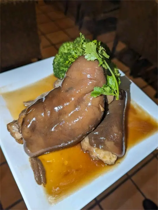 泰式燴元蹄:元蹄用泰式香料熟波非常有特色,肉質鮮嫩,入口有膠質口感,元蹄盡吸醬汁精華,味道濃郁。