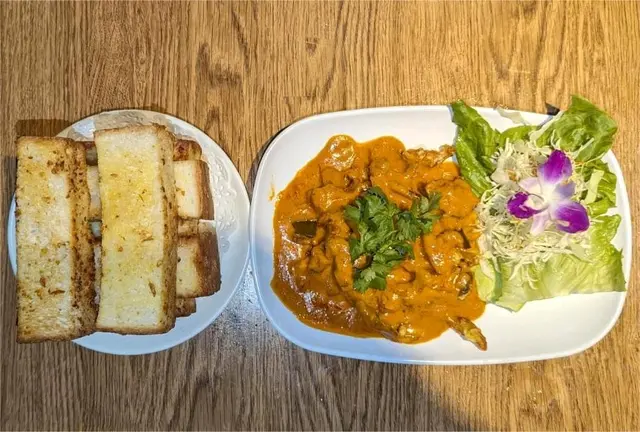 蒜蓉包+乾咖哩軟殼蟹:同平時食開既較糊狀,鮮甜多肉既軟殼蟹經過炸後,口感外脆內軟,蒜蓉包蘸上味咖哩汁一齊,份外惹味,咖喱味香濃,入口幼滑。