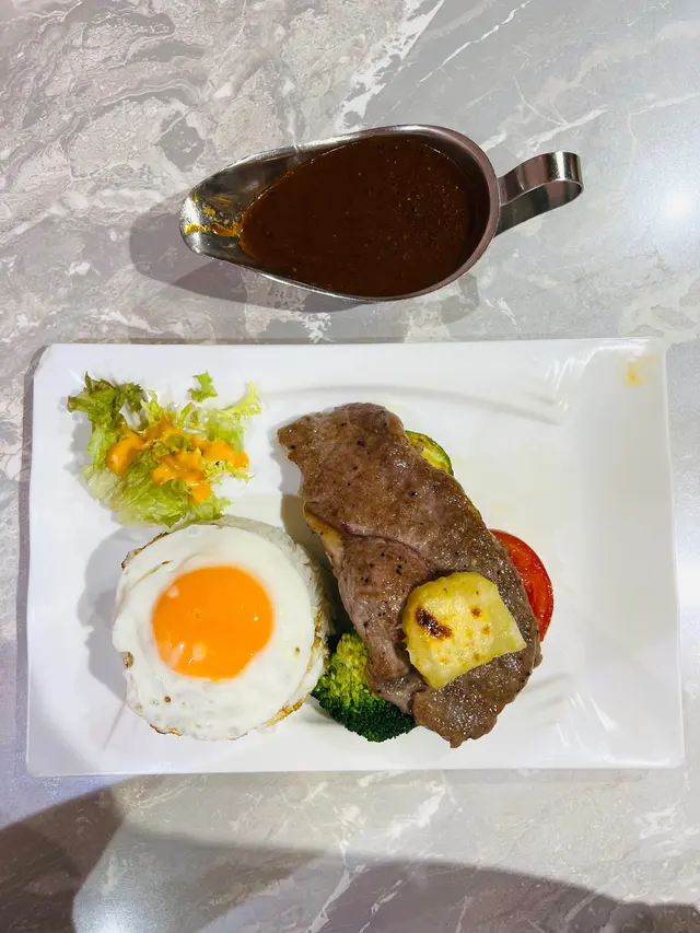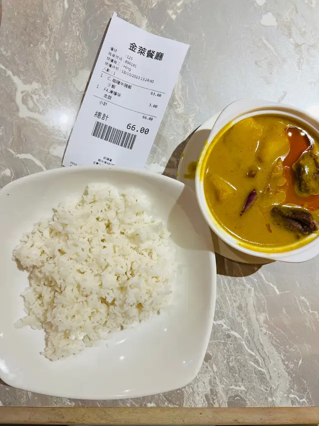 Sometimes in Causeway Bay, I look for a spacious tea restaurant with a wide variety of dishes. This restaurant is a good choice as it's located across from the subway exit, making it convenient for me to go elsewhere after eating. It replaces the previous Tsui Wah restaurant and offers traditional tea restaurant dishes like rice with various toppings, baked rice, stir-fried dishes, and set meals. They also serve roasted meats. Prices range from seventy to eighty Hong Kong dollars. The curry beef brisket rice dish has about eight to nine pieces of beef brisket and four pieces of potatoes. The sauces are slightly sweet and lack the urge to pour over the rice.