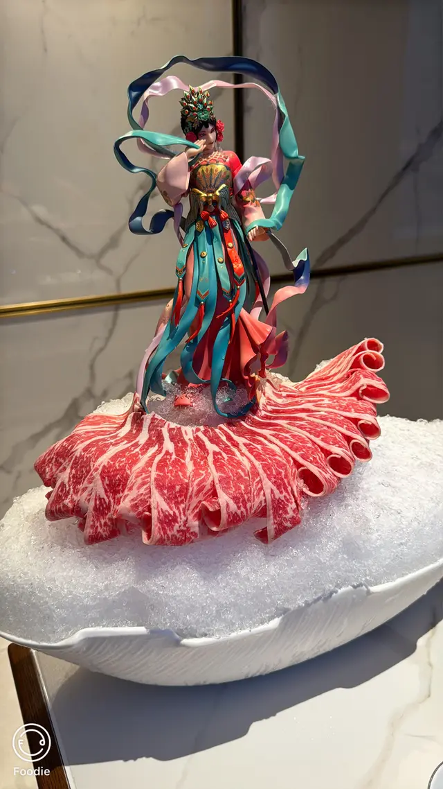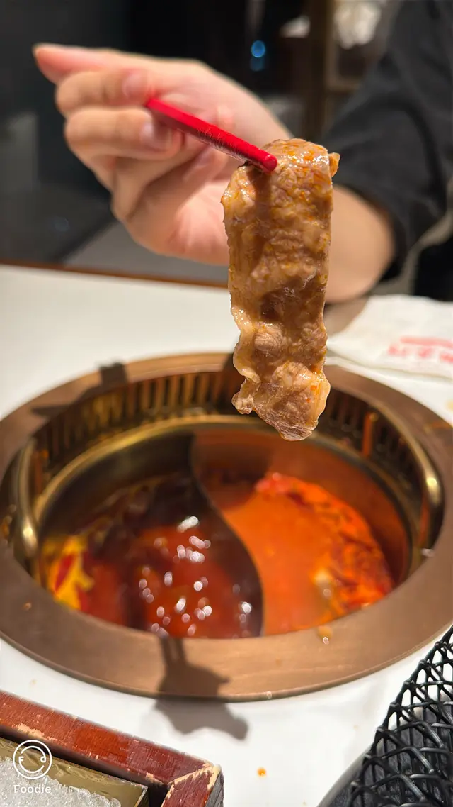 啲A4和牛切到好似玫瑰花瓣咁,打卡呃like指數100分!📸 啲和牛雪花紋理靚到好似藝術品,油脂分佈超均勻。輕輕喺麻辣湯底「七上八下」淥幾秒,牛肉味超級香濃,油脂甘香