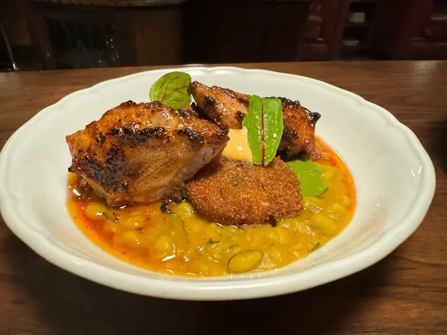 👉接下來便是主菜有兩款,首先是烤鴿子肉配豆餅,鴿子肉烤得非常香嫩,豆餅有咖喱的香味。第二款是天多利烤牛扒。牛肉用香料及特別的醬料預先醃好,再放在烤爐上烤。牛扒烤得鬆軟有焦香味,入口鬆軟,味道難忘。配上金菜頭乳酪及特別的蕃茄辣汁,非常優秀的出品!