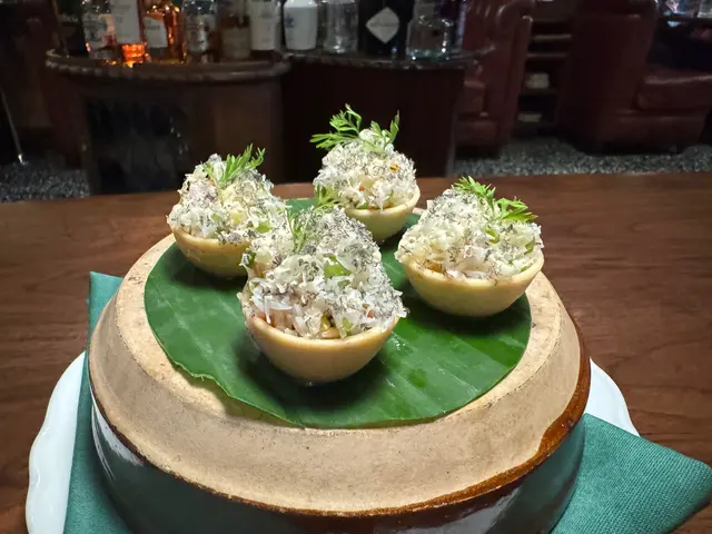 👉第二道菜是蟹肉暖撻,加入芝士和香料,口感豐富,也富有印度街頭小吃的特色。