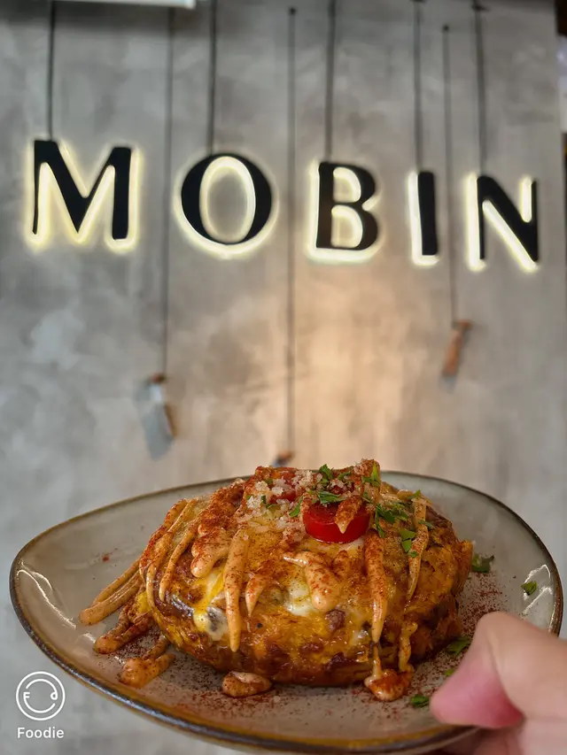 MOBIN主打多國菜式,特別係融合咗墨西哥風味嘅創意料理,好多菜式充滿驚喜。例如佢嘅腐乳Carbonara同大澳蝦醬意粉,絕對係創新嘅代表作。試咗MOBIN 嘅西班牙烤洋蔥薯仔蛋餅配煙肉 ,真係人氣王實至名歸!用日本雞蛋同焗薯仔,芝士同焦糖洋蔥一齊焗,外層脆卜卜,切開有流心蛋香撲鼻,配上煙肉鹹香同自家製Mobin醬,味道層次豐富。牛扒配酸種麵包亦好出色,牛扒入味軟嫩,酸種麵包帶點嚼勁,完美配搭。飲品選咗Caramel Latte,香濃暖胃,甜度啱啱好。甜品Affogato冷熱交融,意式濃縮同滑溜雪糕一啖入魂,好滿足。