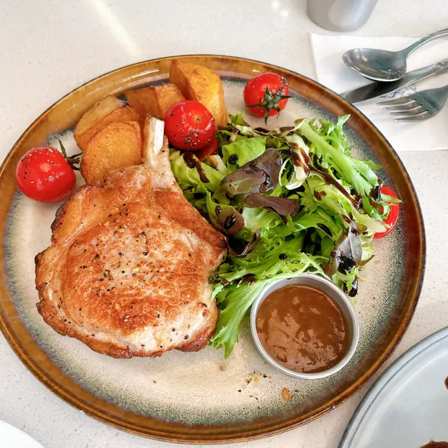 👍🏻👍🏻👍🏻👍🏻香煎加拿大豬鞍扒伴焗香蜜糖薯仔:豬鞍扒煎得啱啱好,外皮金黃香脆,入面juicy又嫩滑,一啲都唔乾柴。肉質帶有淡淡嘅肉香,配埋個蜜糖薯仔,甜甜鹹鹹,好夾味😋!個薯仔焗到外脆內軟,蜜糖嘅甜味滲入薯仔入面,正呀!