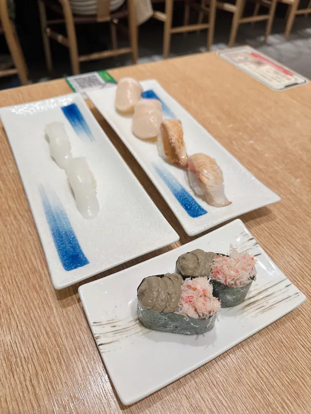 壽司就叫了火灸帶子,帶子,赤蝦,油甘魚,魷魚,鯛魚,三文魚等等,都算新鲜,個人覺得帶子肥美有鮮味,赤蝦彈牙鮮甜最好食,其他壽司味道可以,不過三文魚有啲筋,明顯同頭盤盛合相差都有距離 😕。