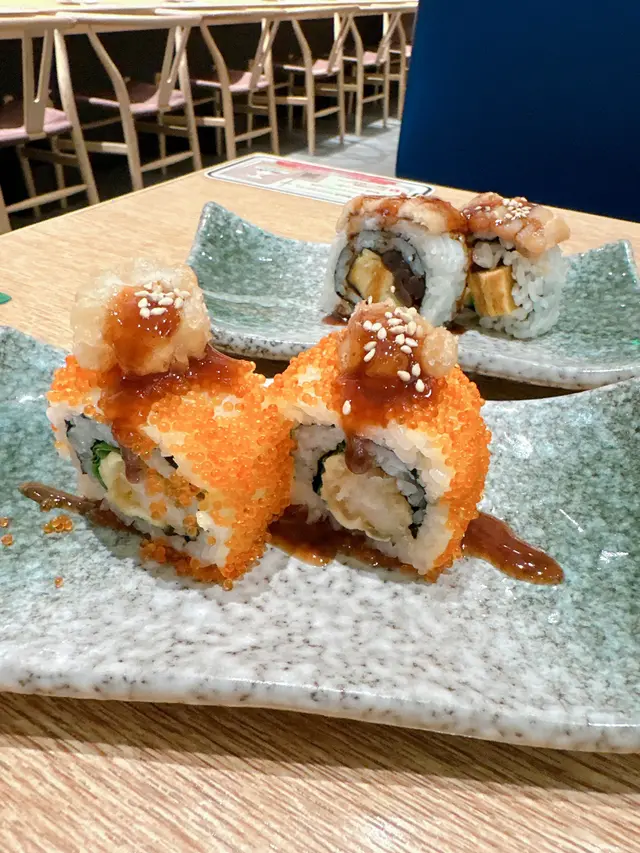 海膽手握軍艦,蟹膏蟹肉手握軍艦,炸蝦卷同鰻魚卷就有點不及格,蟹膏明顯不新鮮,有點腥,海膽上台見到顏色同色澤、就已經知道唔新鮮,重有點腥,冇食過咁嘅海膽,炸蝦卷同鰻魚卷,D炸蝦淋身,鰻魚又係有腥味。