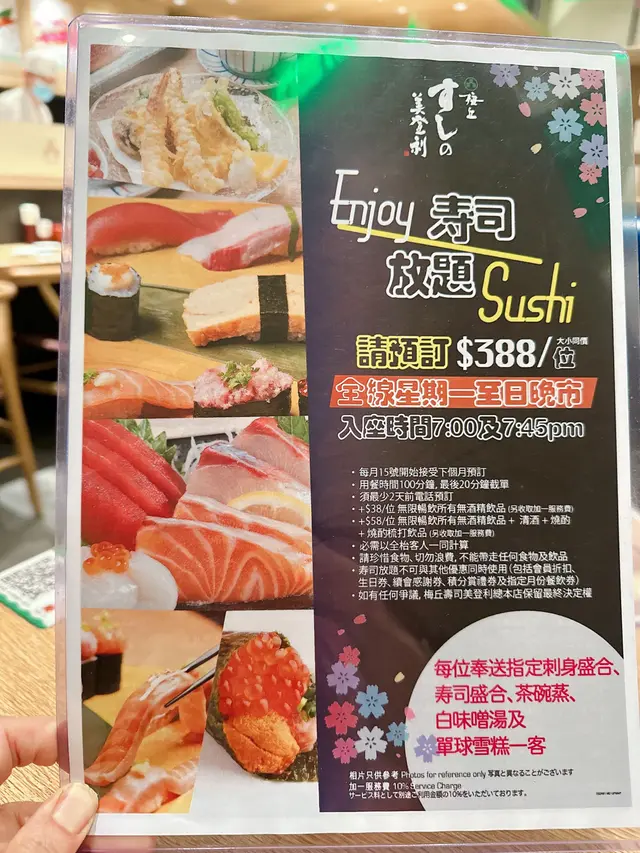 就book 咗去試吓, 可以無限食各類壽司,可任食三文魚、吞拿魚、大赤蝦、油甘魚、帶子、海膽等壽司,超過80款單品,無限暢食100分鐘,入座後即送上刺身盛合,壽司盛合,茶碗蒸,白味噌湯。