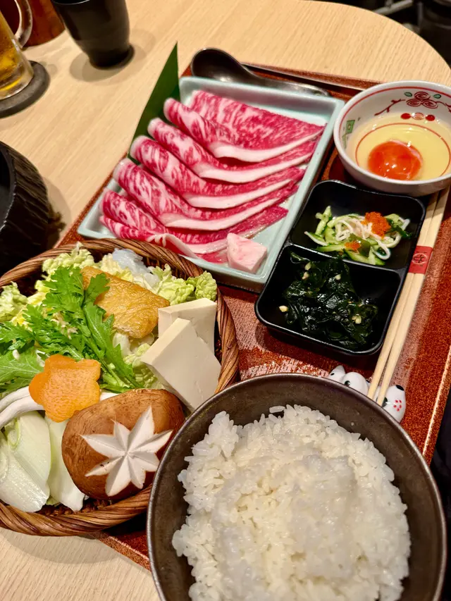 配菜方面就見到心思😆豆腐吸滿壽喜燒汁💛爽甜洋蔥同冬菇令整體味道更立體😚白飯撈埋壽喜燒汁食❤️‍🔥完全浸滿牛香同醬香👀唯一要提提就係呢個套餐可能對於男士們黎講份量唔算太多~食量大啲嘅朋友可能要考慮加大😌🫶🏻