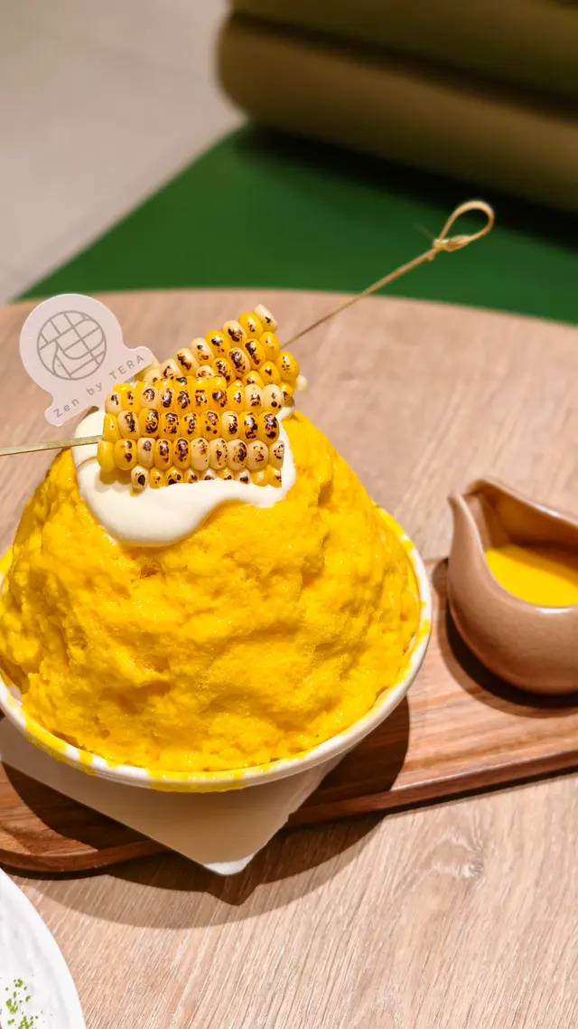 真係全場打卡位🌽✨!份量足夠2-3人share,大大碗刨冰鋪上咗海鹽芝士奶蓋🧂🧀、燒粟米🌽,仲可以淋上粟米汁~ 刨冰入口冰涼爽快,粟米甜味好突出,唔會假,係天然粟米清香!最正係食到中段仲有粒粒粟米,口感豐富得嚟完全唔會膩!不得不讚呢款超有創意嘅刨冰💛~