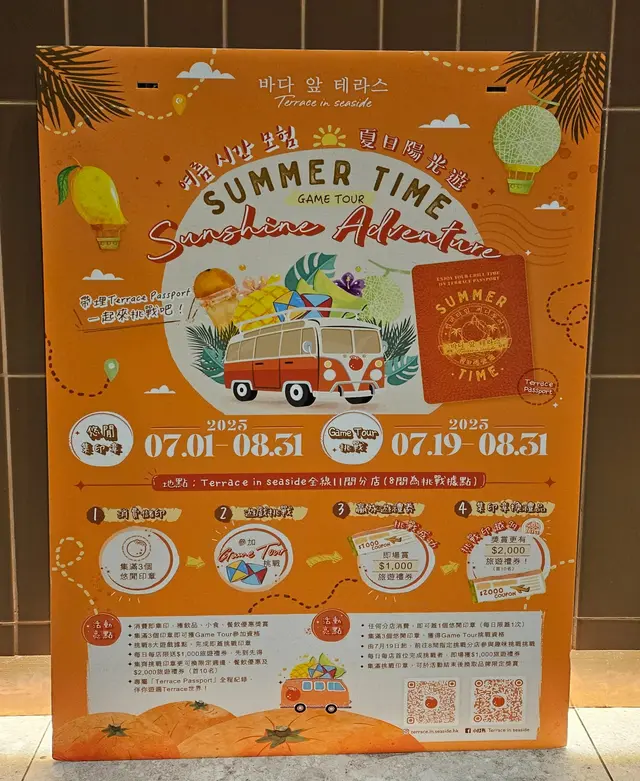 📢想嚟一場超好玩嘅[夏天陽光遊]活動嗎🏖 ? 只要帶上你嘅Terrace Passport📙,集齊3個悠閒印章🟡,即可參加韓國傳統遊戲挑戰🎯,贏取旅遊禮券同限定獎賞🎁✈️