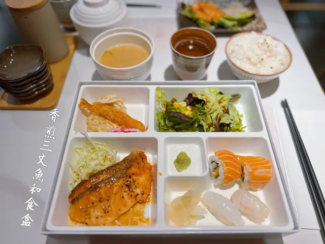 多樣化·和食 b_b2004等級42024-04-17417 瀏覽 關注 座位唔算多,不過好簡潔明淨,坐得舒適!呢度不設加一,好抵食,重點係食物多樣化!👉🏻香煎三文魚和食盒 $148有兩塊香煎三文魚之外,仲有沙律、天婦羅炸蝦、餃子、四件壽司同麵豉湯!真係超豐富,用左北海道壽司米,無論係視覺上定係味覺上都好享受!👉🏻薄切刺身壽司手卷盒 $168先上左薄切刺身,共兩款四片,鮮嫩!然後有卷物、五款壽司仲有招牌自創手卷!特別中意個手卷,係火炙左口魚邊,配爽脆紫菜,讚!👉🏻玄米茶 $3清新,不苦澀!以上食評乃用戶個人意見 , 並不代表OpenRice之觀點。讚好分享多樣化·和食 Oomaki (萬年大廈) https://s.openrice.com/QrbT05vbI00檢舉 張貼 評分5味道4環境4服務5衛生5抵食用餐途徑堂食