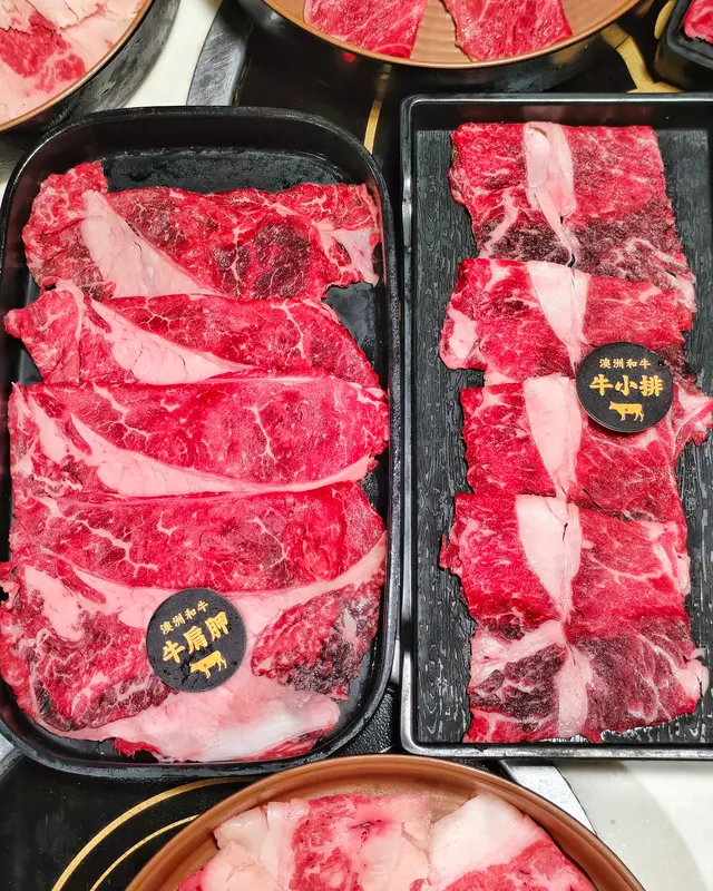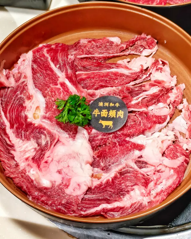 話明叫「牛之鍋」🐂,靚牛就一定唔少得啦!我哋揀咗澳洲M8和牛 🥩 任食,真係冇揀錯!佢哋提供咗多款坊間比較少見嘅 🥰 高質牛肉部位,包括:M8和牛面頰肉 😋、M8和牛黃瓜條、M8和牛肥牛 🐄、M8和牛牛肩胛 💪 同埋M8和牛牛小排 🍖。每一款都油花 ✨ 分佈均勻,肉質軟嫩 😍,輕輕一淥就食得 🥢,牛味濃郁,真係食到好滿足 😊!特別係和牛面頰肉 👏 同黃瓜條,口感好特別 ⭐,值得一試 👍!