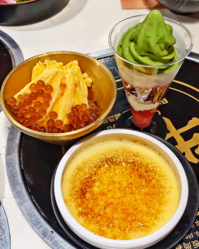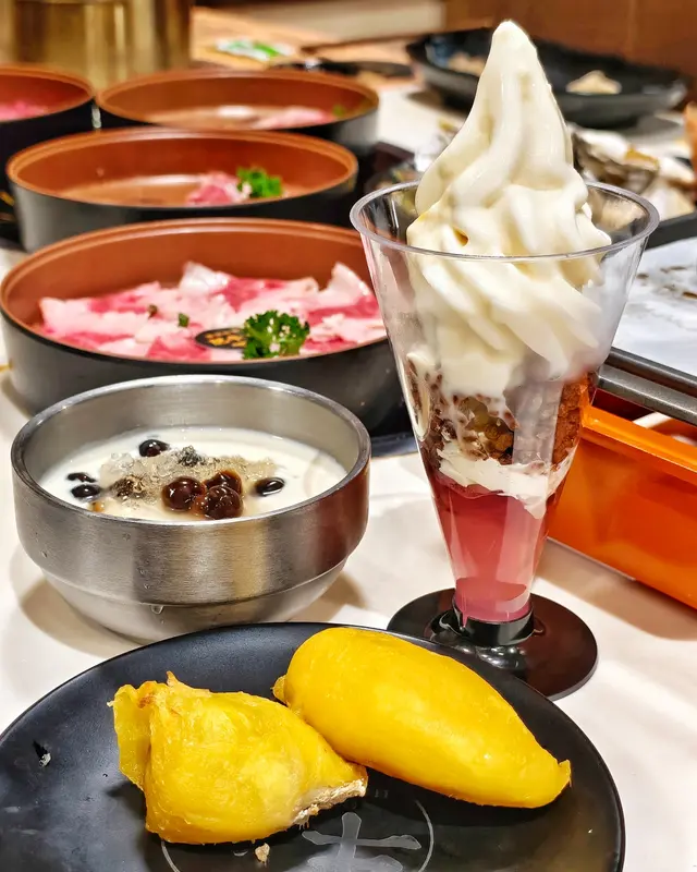 最後當然唔少得甜品啦 🍰!「牛之鍋」嘅甜品款式真係非常之豐富而且好高質 ⭐,完全唔係求其嗰種 🤩!有烤榴槤 🔥、榴槤芭菲 🍨、雪燕榴槤忘返、法式焦糖燉蛋 🍮、宇治抹茶芭菲 🍵 同埋綿綿冰 ❄️。榴槤控一定會瘋狂 🤪,烤榴槤香甜軟糯,榴槤芭菲 🍨 同雪燕榴槤忘返都充滿濃郁榴槤香。法式焦糖燉蛋 🍮 香滑,宇治抹茶芭菲茶味濃郁 🍵,綿綿冰就清涼解膩 ❄️,為呢餐豐盛嘅放題畫上完美句號 ✨!