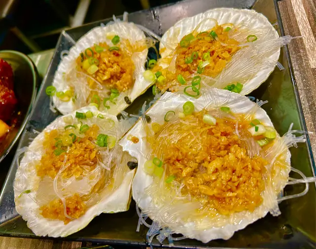 以新鮮的扇貝為主要食材,搭配蒜蓉、粉絲等調味料,蒸至熟透後上桌,扇貝本身非常鮮甜,而蒜蓉和粉絲的加入則能夠增加扇貝的風味,因為蒜蓉隨蒸煮過程釋放出淡淡的蒜香,與扇貝的鮮味融合在一起,味道更加豐富。