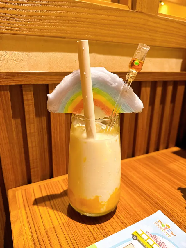 上面用左彩虹棉花糖雲朵做裝飾,下面係清新芒果特飲,甜而不膩!