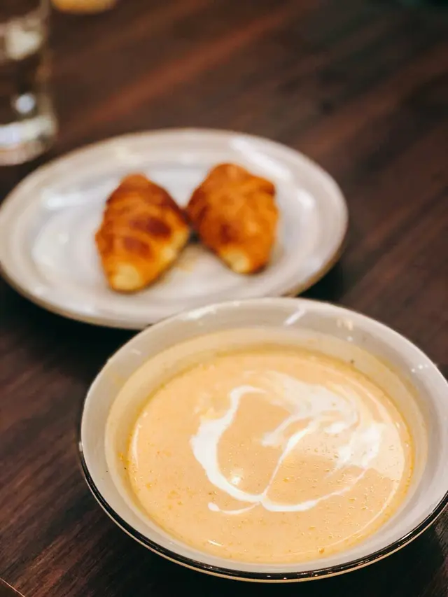 兩道菜也伴有一碟龍蝦湯、牛角包和飲料。