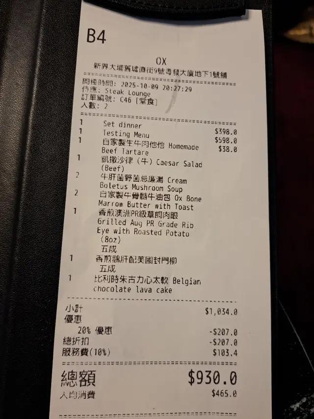 今日去左OX Steak Lounge食物有質素性價比好高💯!裝修英倫風格既大埔扒房🍽,採用典雅水晶燈和深藍色牆身🪟營造出浪漫氛圍,有Set Dinner由$398至$598不等,有齊前菜、餐湯、主菜同埋甜品,依家做緊8折好抵下。