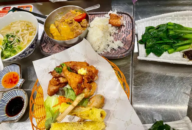 2月頭嘅星期日,當日去咗大埔超級城搵餐廳食晚飯,食飯時間,間間都係要等位,見呢度少啲人等就排呢間,等咗15分鐘內就有位。呢度主要食越南粉麵,咖哩飯,比較小主食,小菜散叫。我哋叫了一個2人餐,再叫多了兩個菜,保持身體健康。咖啡好惹味,唔辣,飯分量好大,小食拼盤係2人餐包埋嘅,多炸物,有啲熱氣,餐仲跟兩杯餐菜。牛肉河,都正路嘢,菜係菜心,都夠綠同埋嫰。呢間係連鎖餐廳,食物水準可以,想食越南菜時,可以幫襯。
