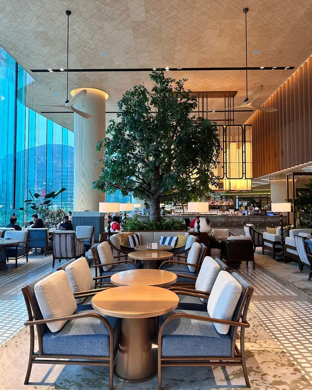 餐廳室內的大樹和熱帶植物打造恬靜舒適的氛圍,令星耀廊猶如酒店的大客廳