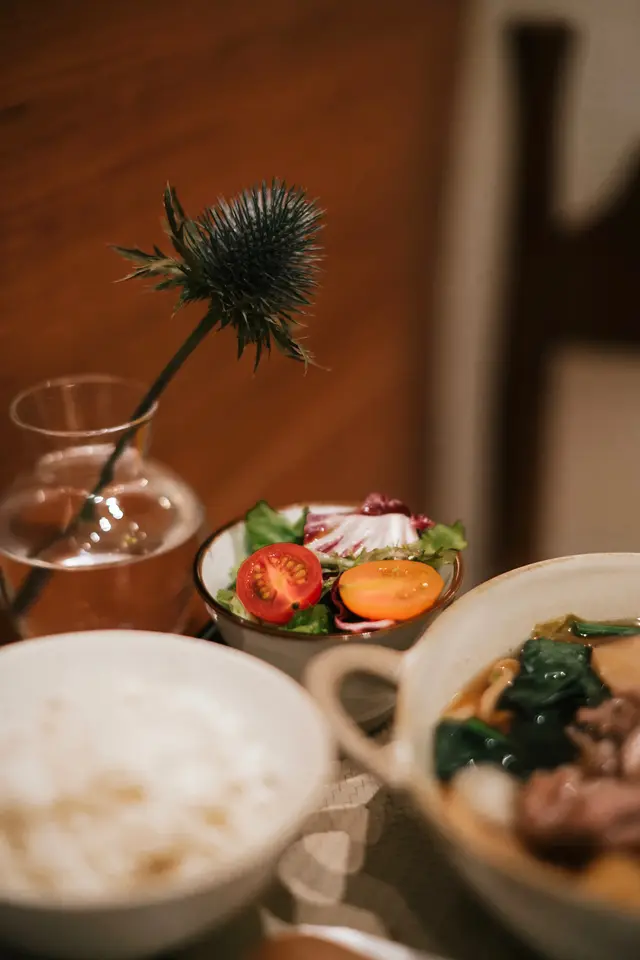 時合前菜 l 野菜盤 l 鮮嫩坐蛋 l 日本珍珠米飯