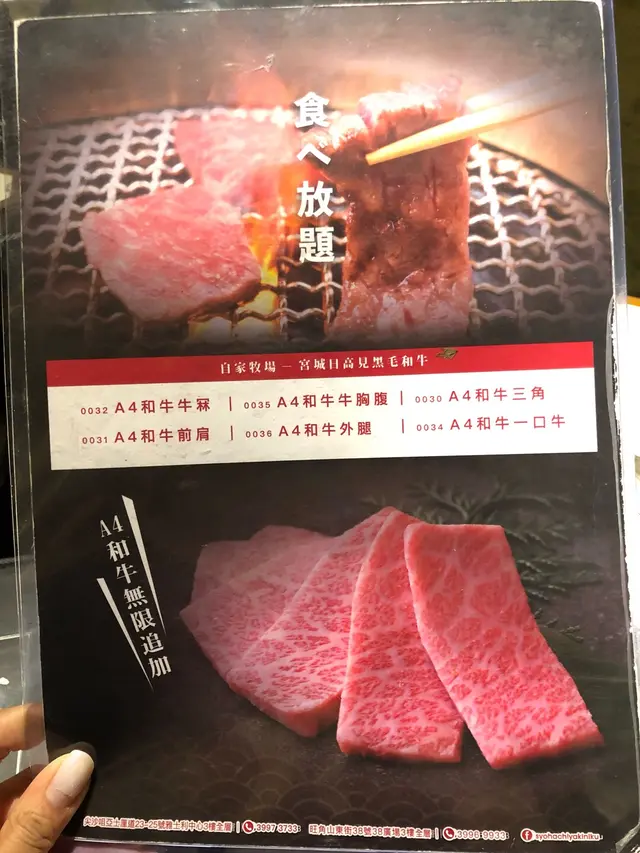 一坐低店員就會介紹返佢哋呢度有兩款放題~一款係A4和牛放題,另外一款就係普通燒肉放題