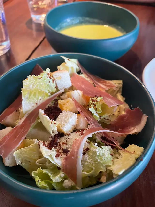 頭盤打頭陣係凱撒沙律配巴拿馬火腿真係一絕!生菜新鮮,搭配嘅巴拿馬火腿咸香可口,非常開胃!之後就係甘筍湯,湯底非常滑順,飲落去有種暖心嘅感覺,配搭蒜蓉包非常夾!