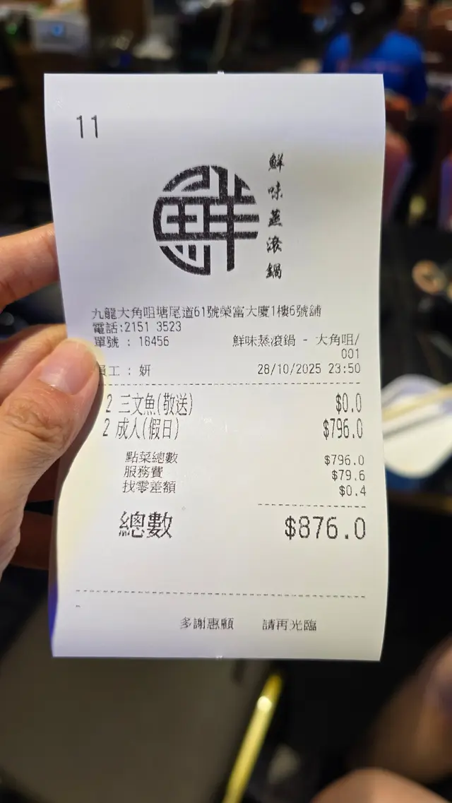 🔥 今日晚市23:50衝咗大角咀塘尾道61號1樓嘅鮮味蒸滾鍋(旺角鐵路站A2出口),一入門就見到滿缸活海鮮,新鮮度即刻滿分!兩人選咗成人一位數 $368套餐(總共$736 + 10%服務費$73.6 + $2.4找零差額 = $812),無限時食足8式,食材認真挑選,海鮮新鮮無沙,質素高到值晒每分錢,宵夜或姊妹聚會必encore!💥