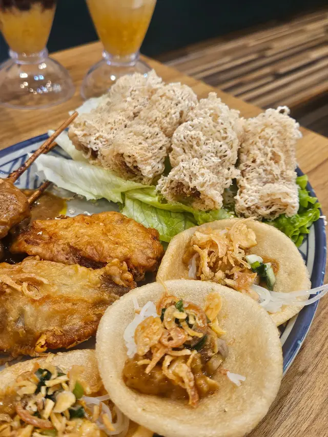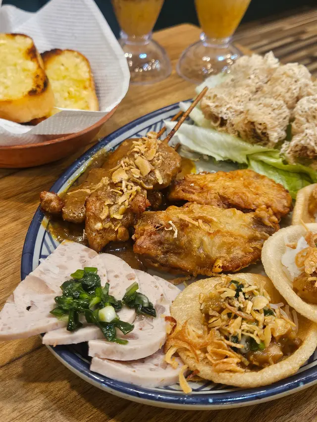 拼盤好豐富 一次過有春卷 炸雞翼 札肉 沙嗲豬肉串燒同越式蝦片