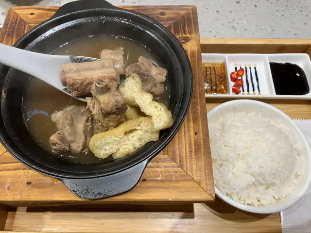 以甘草、當歸、 玉竹、南棗、胡椒與新鮮豬肉煮的肉骨茶湯底正常要濃啲, 但呢間較淡, 肉質亦比較硬, 唔係我食開種意的口味