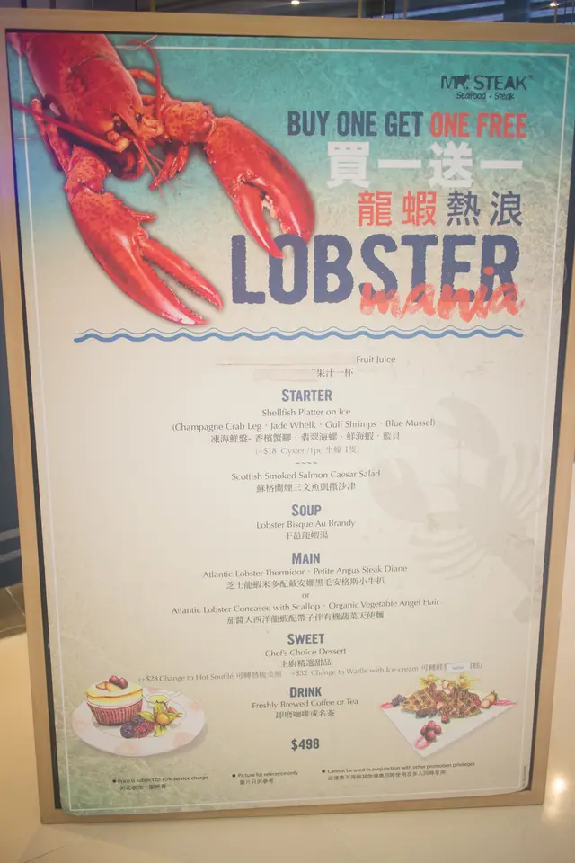 晚餐全部set menu,今期應該做緊龍蝦餐推廣,$498買一送一。