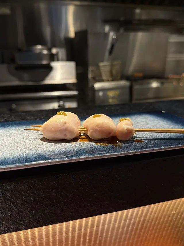 呢個組合真係第一次見🥚🐽豬肉片相對多脂肪,有豐富嘅肉汁,配埋流心蛋黃一齊食 正🤤;免治雞肉棒鹹鹹地,食落除咗有啲雞肉碎,亦都有啲雞骨碎嘅口感 硬硬地咁🐓