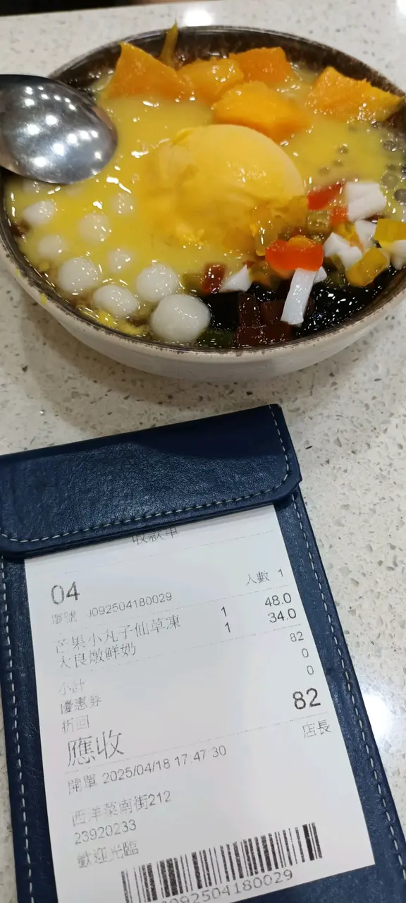 一上枱就畀佢嘅份量嚇親!仙草凍滑溜如絲,配埋煙韌嘅小丸子同爆多芒果粒,芒果汁濃到,甜中帶微微果酸,清新解膩。最正係仙草嘅芒果嘅鮮甜撞出層次,夏日食真係透心涼。