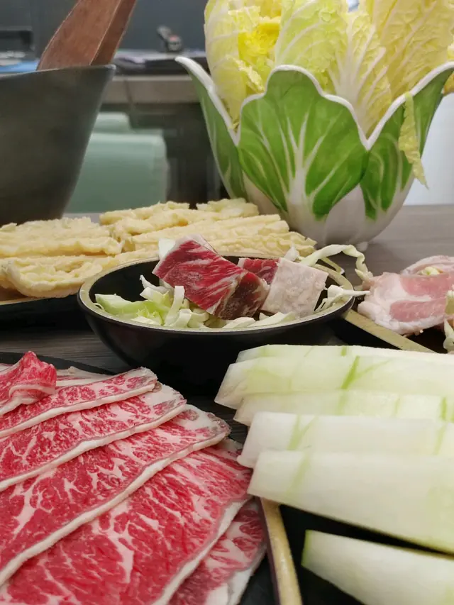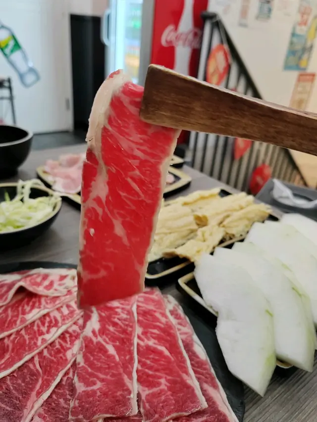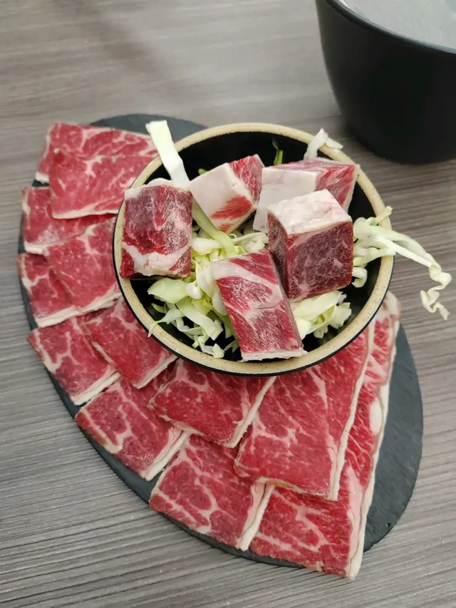 ✅據說這種肉質鮮嫩多汁,肥瘦分布均勻,非常適合火鍋。我們將牛肉放入清湯中煮熟,然後蘸上特製的醬料,肉質鮮嫩,口感細膩,確實不負所望🥰。