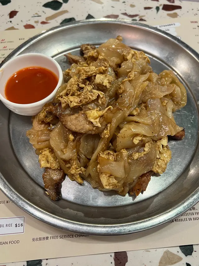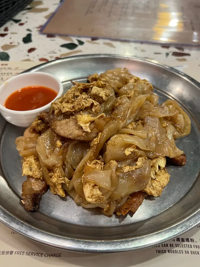 豉油炒河泥(旁邊係泰式辣醬),豬頸肉似係普通嘅肉片,無做到香口脆邊同無彈牙嘅感覺,不過河粉幾闊身嘅,可能食湯船麵會好啲