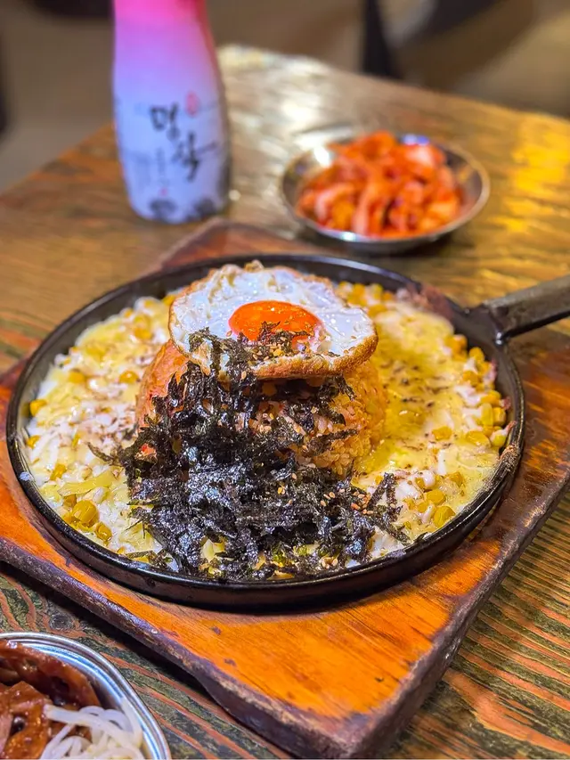 炒飯上面仲要配咗一隻橙黃色嘅燶邊蛋🥚極多粟米同埋芝士🥹芝士好濃郁,再加埋紫菜,口感豐富,每一啖都可以食到好多芝士好正,讓人一口接一口!