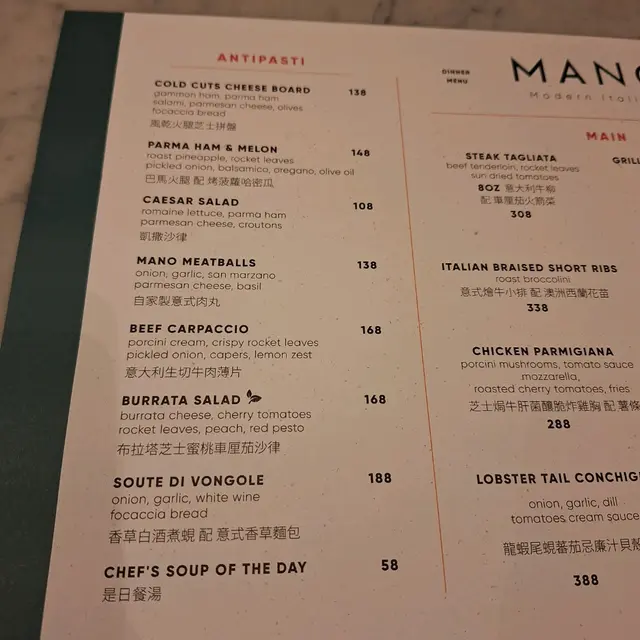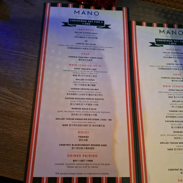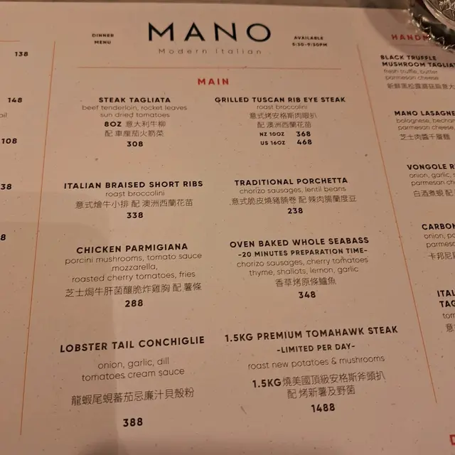 好值得試嘅意大利菜 realmeal等級42023-12-2057 浏览 关注 今晚接完我老公放工之後 去到銅鑼灣拍拖食飯 呢間Mano餐廳最impressive嘅係佢嘅牛扒同埋意粉 今晚真係好想試下今日晚市時間好多人 都要等一陣位 好彩我哋有book枱今晚試咗個 16安士 烤安格斯肉眼扒配澳洲西蘭花苗 16Oz Grilled Tuscan Angus Rib Eye Steak牛扒醃得好入味 一啲都唔韌入口即溶好juicy medium well就啱啱好 西蘭花苗都比較少有 好好食 另外點咗個 卡邦尼義大利麵 意粉都係新鮮手工製 非常之新鮮 忌廉唔算太heavy 唔會油膩 煙肉好香 好夾得嚟唔會 好油膩 Spaghetti Carbonara呢度嘢食真係好出色 地點又方便 好值得再嚟以上食记乃用户个人意见 , 并不代表OpenRice之观点。赞好分享好值得試嘅意大利菜 Mano (The L. Square) https://s.openrice.com/QrbT0o55F00检举 张贴 评分5味道5环境5服务5卫生5抵食推介美食Spaghetti Carbonara用餐途径堂食