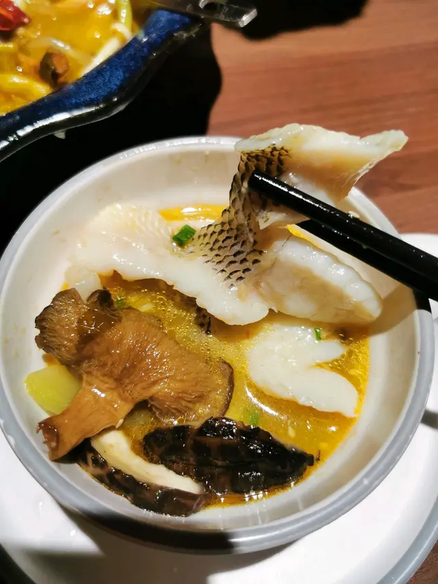 我地午市時間去餐廳已滿座,等左兩分鐘就有位。午餐有套餐,但朋友為金湯酸菜魚而嚟,當然要叫啦,$188 食到夠份量概酸菜魚,用上加洲鱸魚,夠哂落本,我試過一些鋪頭夠膽死用雪藏越南龍脷柳,完全唔好食。份量如圖所示好大,酸菜係薄切,份量多,加埋其他菇菌變得豐富。
