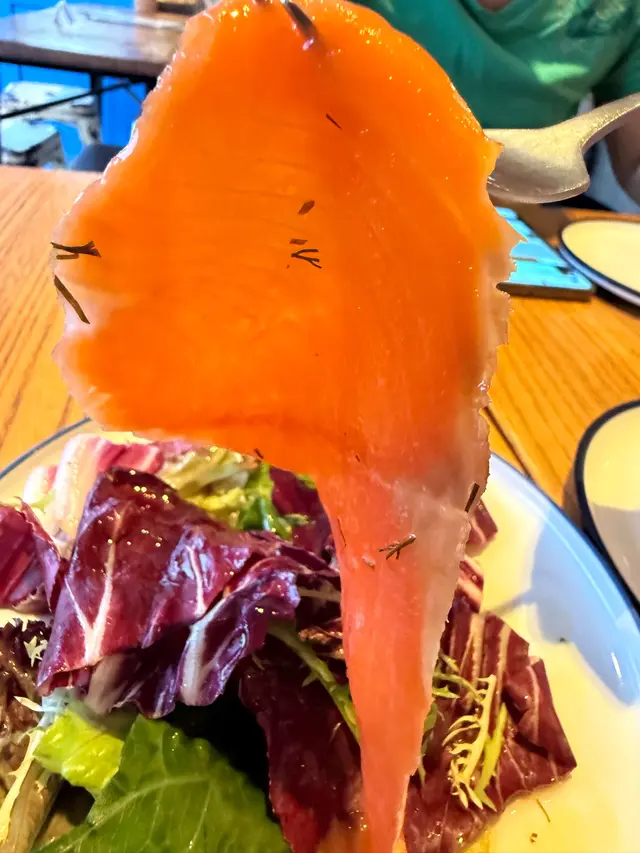 呢個沙律有煙燻三文魚,味道濃郁,帶少少鹹香。蜜糖醬甜中帶酸,令整個沙律更加清新可口。