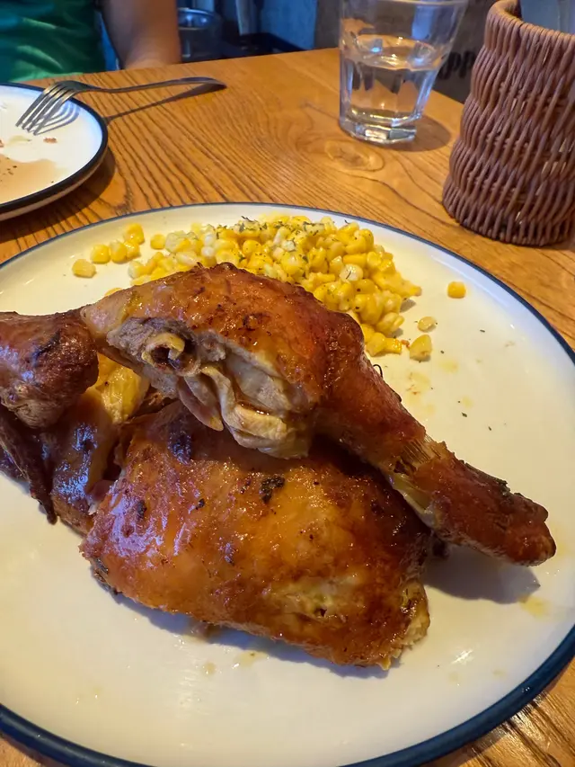 呢隻烤雞外皮金黃香脆,肉質嫩滑,味道濃郁,主要睇住個爐新鮮烤焗 ,配搭甜玉米更加添一啲甜味,食落去好有滿足感。