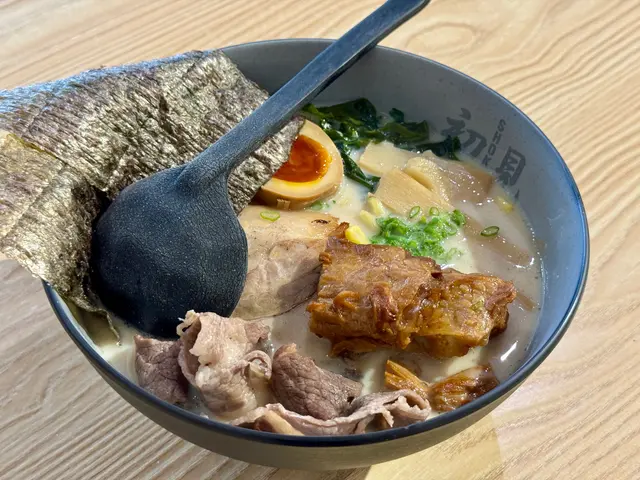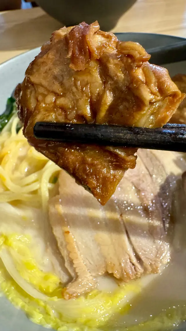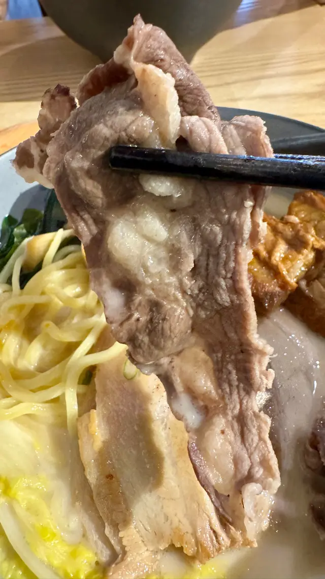 「初見特上•豚骨湯拉麵🍜」:材料包括豬軟骨、日式叉燒、牛肉,仲有半隻溏心蛋👍,豚骨湯底幾濃郁😋