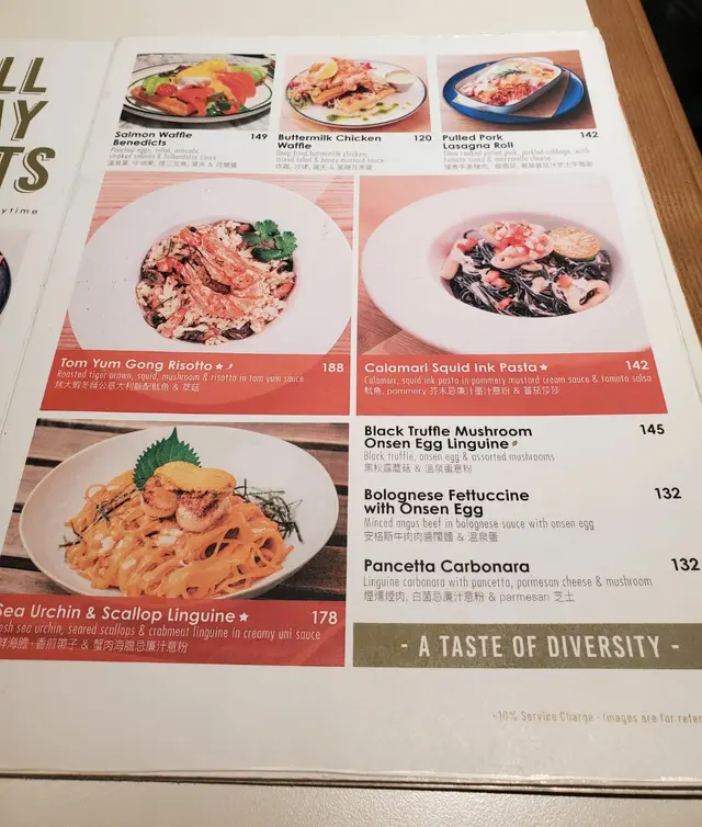 而餐單選擇種類繁多,前菜的有薯條🍟、沙律🥗、海鮮🦐等,主食的又有意粉🍝、飯和漢堡🍔,甜品方面,更有這店最有名的梳乎厘班戟🥞和窩夫🧇! 每樣都極吸引,這真讓兔小妹和同事頭痛呢!😝