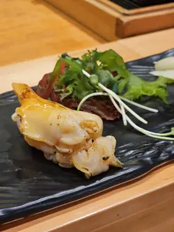 肉質爽脆,淡雅得嚟夠清甜,輕輕燒過之後嘅微焦,大大引出貝肉獨有嘅海洋風味。妹豬扮專家,話青柳肉質寧舍嬌嫩,所以火候要控制得宜,否則會加熱過度而影響口感,因此鮨舞師傅手藝真心高超!